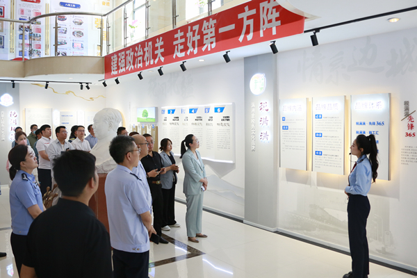 在满洲里市税务局,邵菲一行先后参观了税务文化展厅、党建长廊、“税阅”书屋等场所,与满洲里市税务局的党务工作者们交流经验。在讲解员的带领下,参观人员认真听取自治区税务局“税润北疆”品牌、满洲里税务文化品牌“税满满”的全面介绍,深入了解自治区税务局党委“1368”工作思路,和满洲里税务党建工作亮点。税务干部通过一张张图片、一段段文字,向大家积极介绍满洲里税务落实“党建品牌聚力”工程的工作成效。参观中,大家翻阅档案资料,并纷纷表示,党建品牌“满税先锋365”有新意、有亮点,税务党建工作有实招、有经验,对于今后开展好党务工作十分具有借鉴意义。