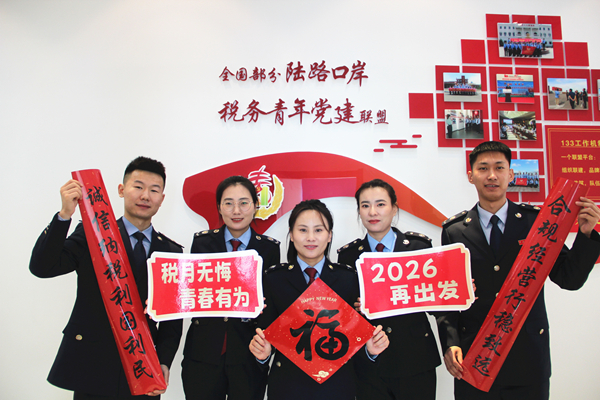作为“全国部分陆路口岸税务青年党建联盟”成员单位,满洲里市税务局中俄互市贸易区税务分局的青年税干表达对新年的美好祝愿,展现在党建引领下税务青年队伍的精神风貌和取得的丰硕成果(李玉琴 摄)