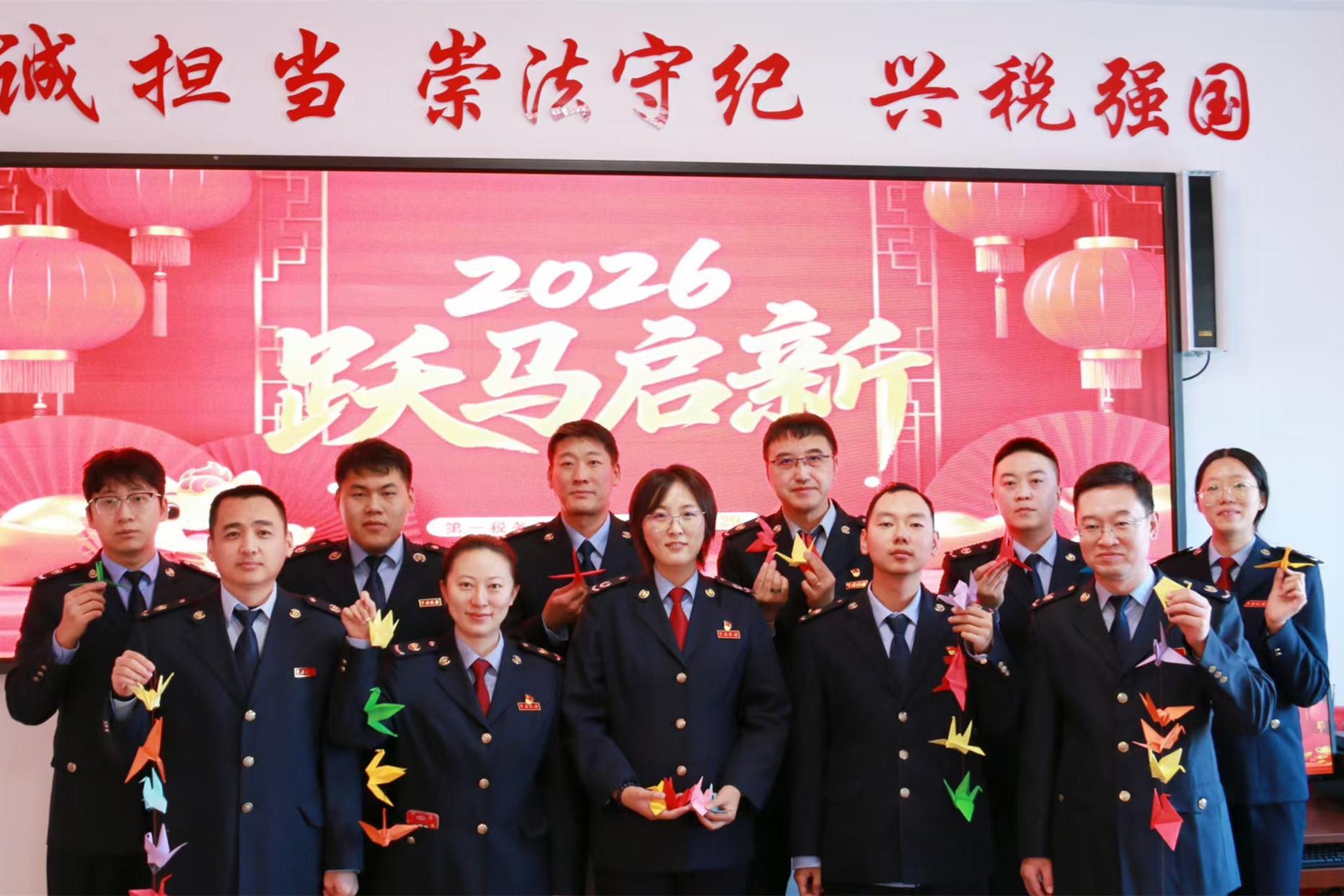 满洲里市税务局第一税务分局开展“跃马启新,新年祝福”活动,通过一同制作手工折纸,撰写新年祝愿等系列活动,互相祝愿,并肩迎接新的一年。(单梁 摄)