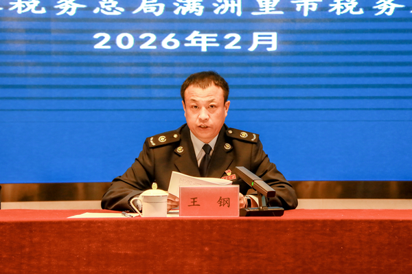 2月12日,满洲里市税务局召开全市税务工作会议。会议以习近平新时代中国特色社会主义思想为指导,深入贯彻党的二十大和二十届历次全会精神,认真落实全国税务工作会议、全区税务工作会议及全市经济工作会议精神,总结2025年和“十四五”时期全市税务工作,研究满洲里税务事业发展总体要求,部署2026年重点任务。满洲里市税务局党委书记、局长王钢作工作报告。