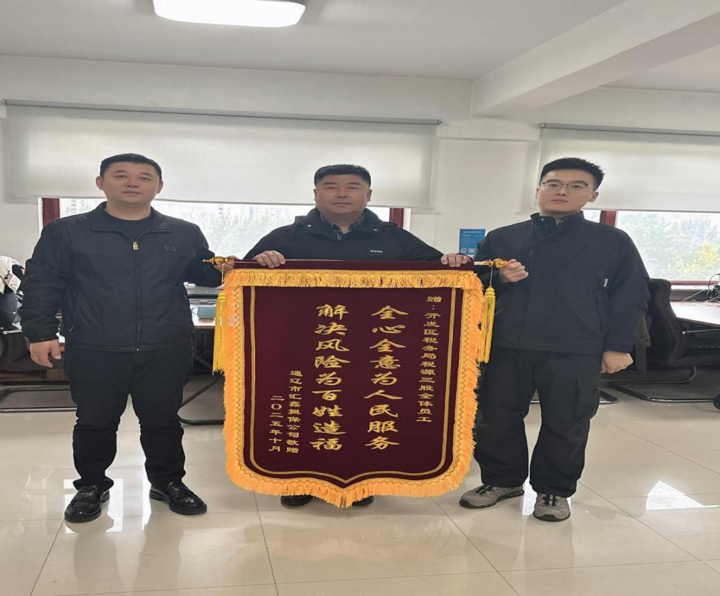 近日,通辽市汇鑫投资担保有限责任公司法人赵万山专程来到通辽经济技术开发区税务局税源管理部门,将一面绣有“全心全意为人民服务、解决风险为百姓造福”的锦旗送到工作人员手中,对税务部门主动服务、高效化解企业涉税风险的举措表示衷心感谢。