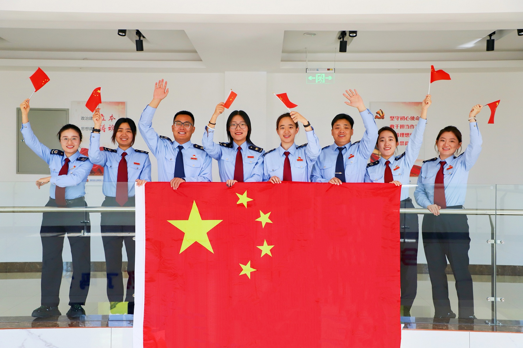 察哈尔高新技术开发区税务局组织青年干部与国旗合影,以“税务蓝”告白“中国红”,表达对祖国母亲最崇高的敬意和最美好的祝愿,展示税务人昂扬向上的精神风貌,进一步激励税务干部增强热爱祖国、勤奋工作的内在动力。