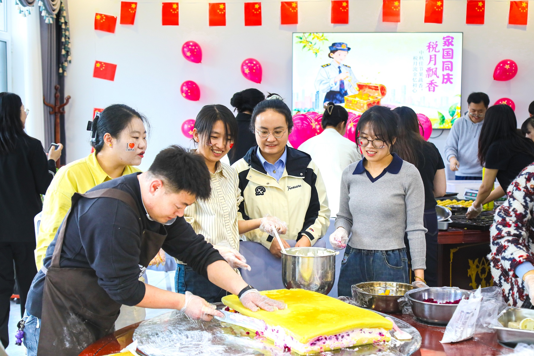 化德县税务局举办“家国同庆 税月飘香”主题活动,组织干部职工亲手制作月饼与蛋糕。活动现场气氛热烈,这边巧手包馅、压模成型,制作象征团圆的月饼;那边精心涂抹、创意裱花,装饰满载喜悦的蛋糕,干部职工们在一揉一抹间,将国家情怀与团圆美满紧密相连,表达对祖国的美好祝福。