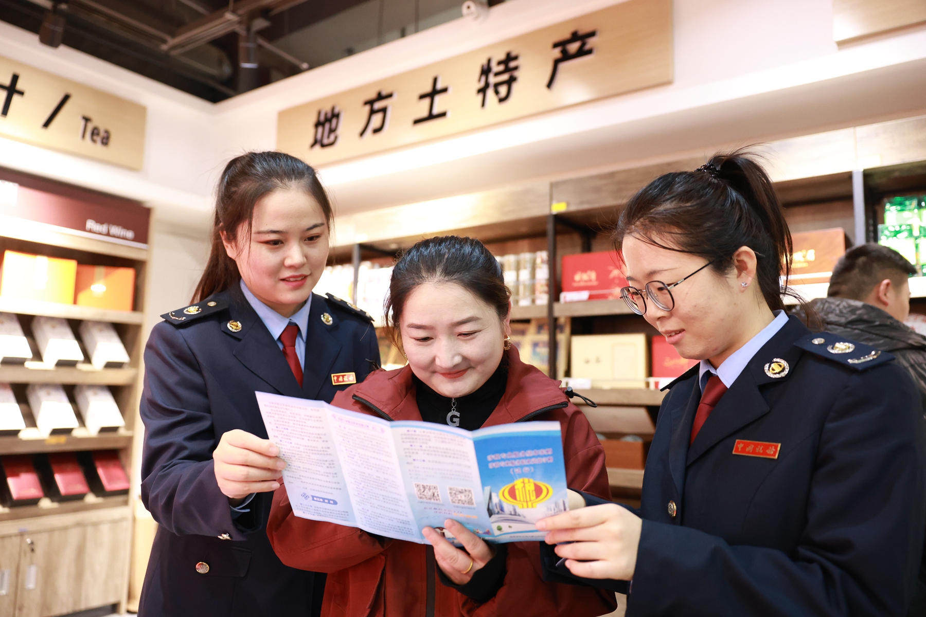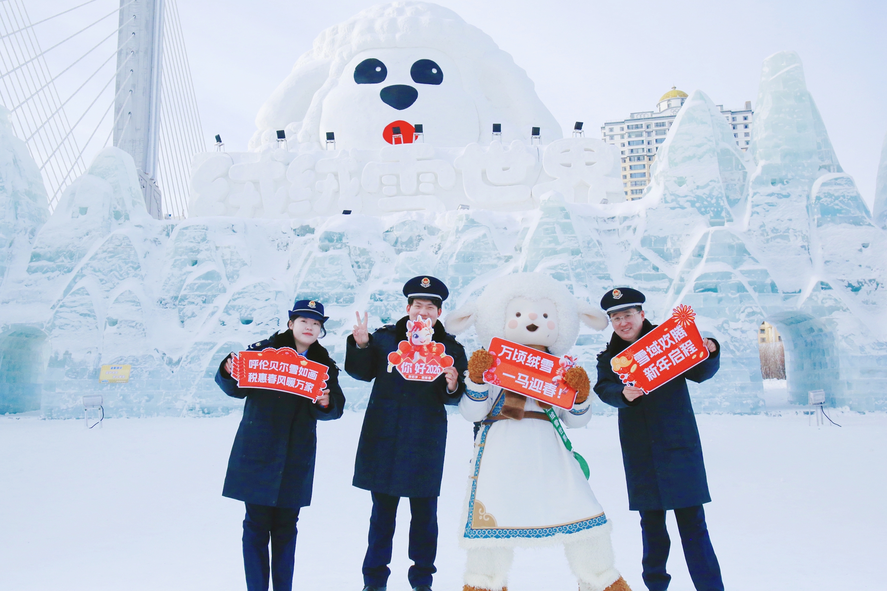 在呼伦贝尔市,海拉尔区税务部门的干部职工化身“政策宣传员”,走进冰雪主题乐园“绒绒雪世界”,向游客普及税费政策,让冬日的雪景成为传递政策的“流动课堂”,同时传递对新年新气象的期盼。(张楠楠 摄)