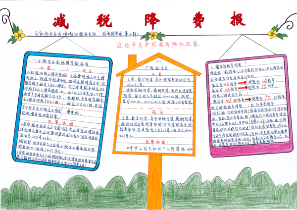 ![]() “有了这一张张的手抄报,以后了解减税降费知识,就再也不用低头戳手机了,我的老花镜也要下岗了。”56岁的喀喇沁旗通安民爆有限公司会计白玉茹,在拿到税务机关精心编辑绘制的“减税降费报”后高兴地说。