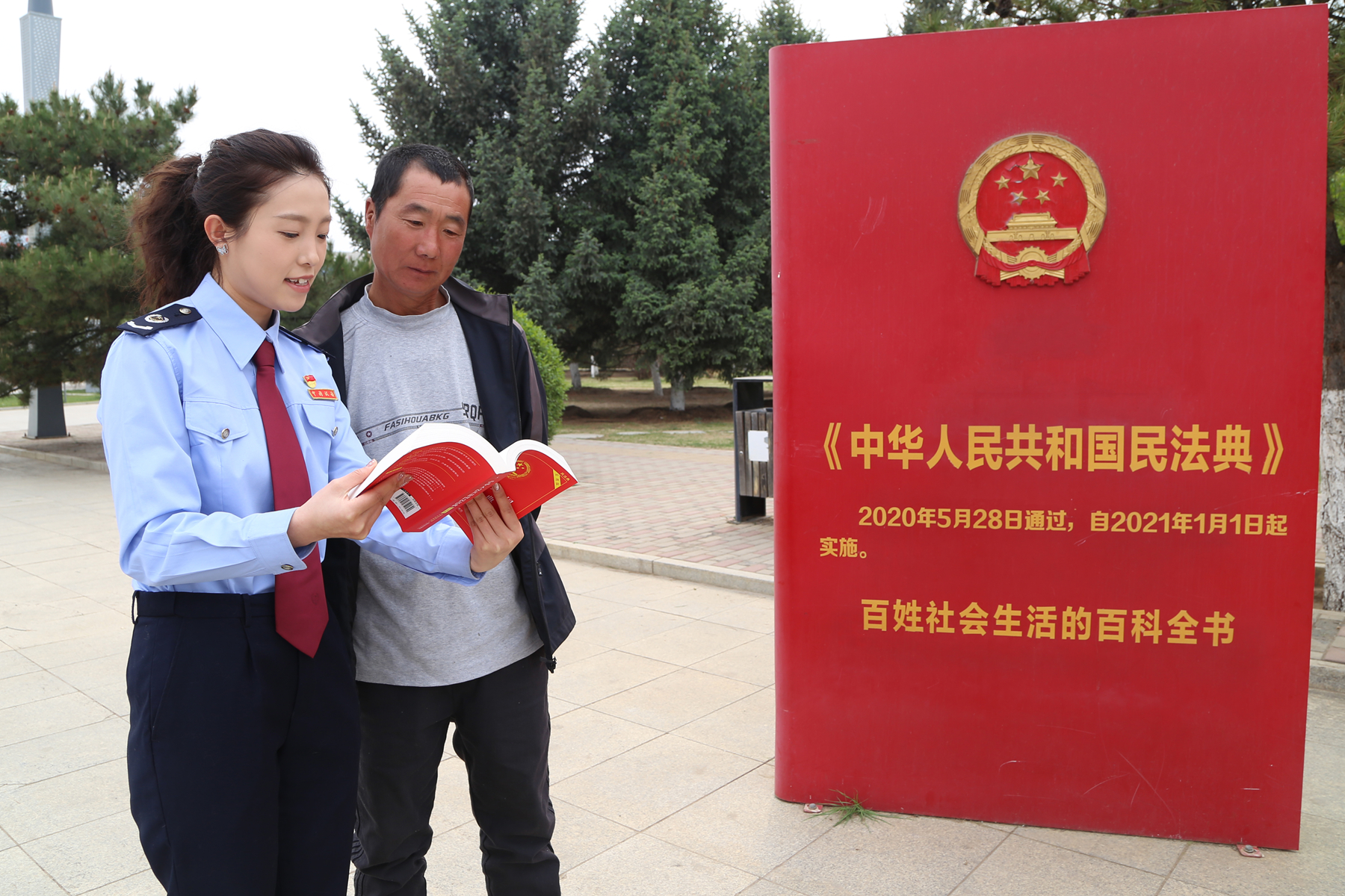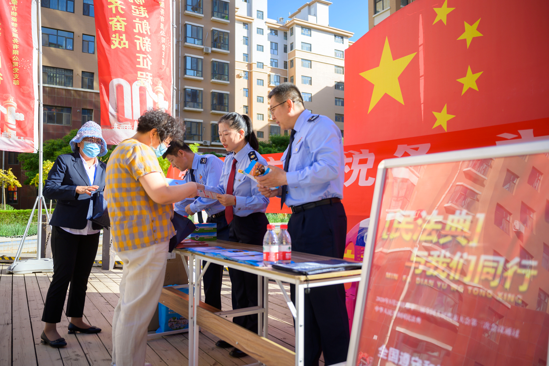 在赤峰市,克什克腾旗税务部门青年志愿者走进法治广场开展民法典宣传活动,向群众普及民法典知识,引导群众学法、懂法、用法。(张晶 摄)