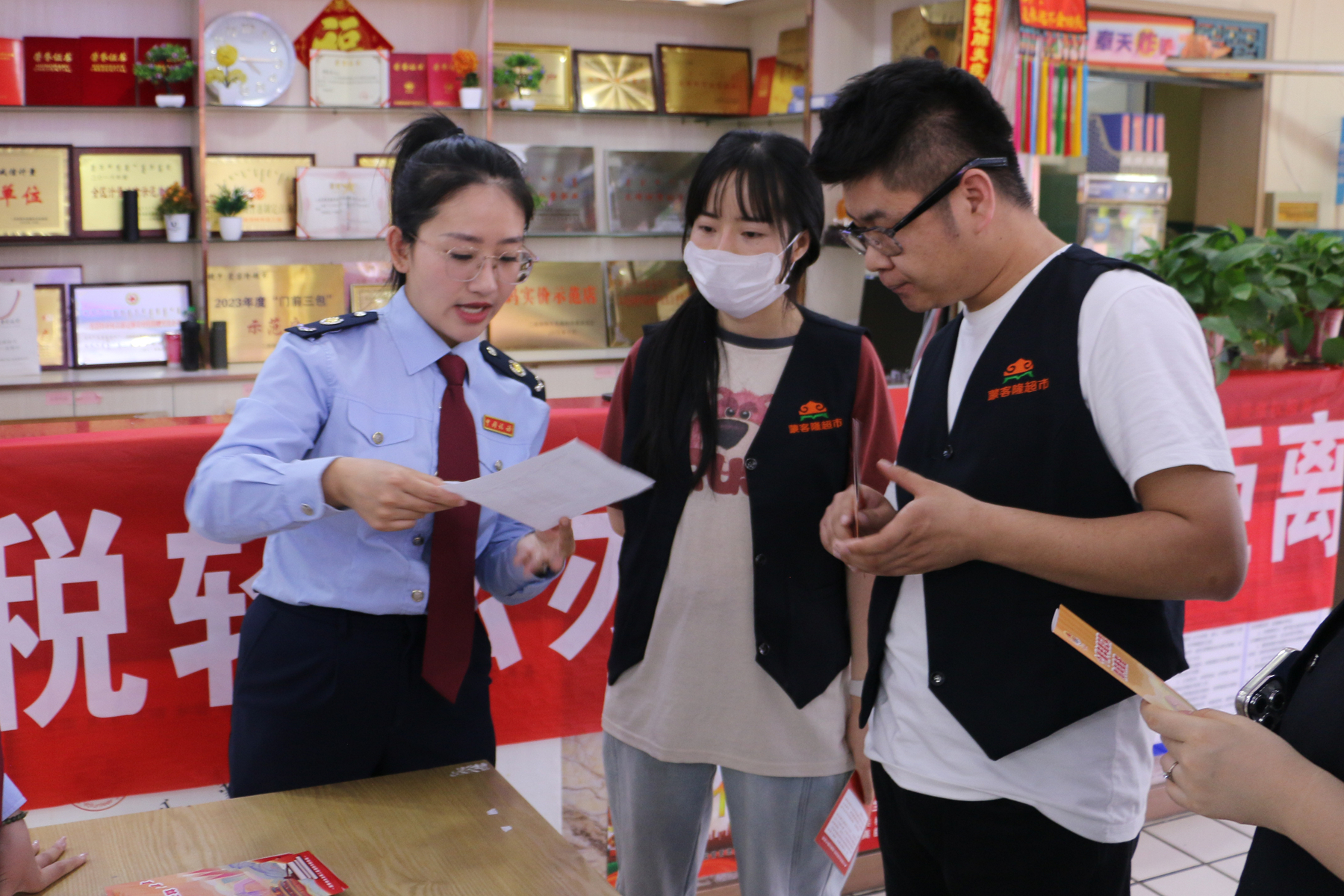 在二连浩特市税务局城区税务分局,税务干部深入企业与商超开展民法典宣传活动,结合个人所得税专项附加扣除政策,开展民法典、税法知识普及。(隋小萌 摄)